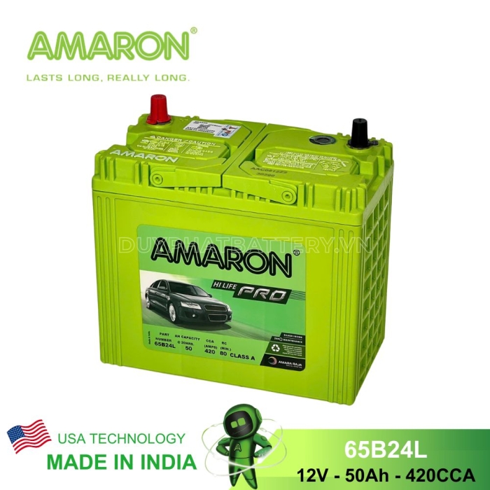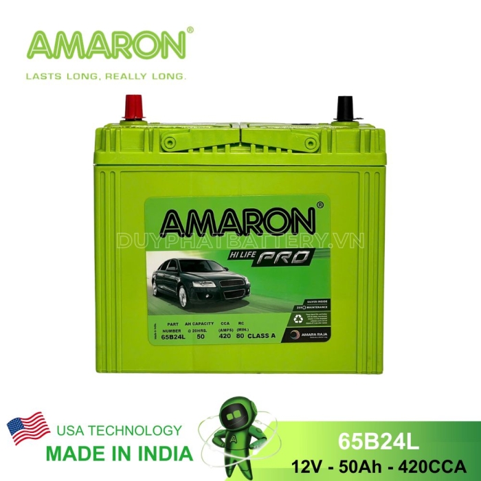 Ắc quy Amaron 65B24L 12V-50Ah là sản phẩm của thương hiệu Amaron – một trong những nhà sản xuất ắc quy hàng đầu tại Ấn Độ. Sản phẩm được sản xuất theo công nghệ tiên tiến, đáp ứng đầy đủ các tiêu chuẩn quốc tế về hiệu suất, an toàn và độ bền.