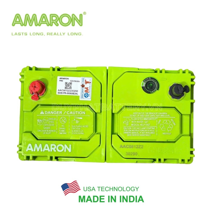 Amaron là thương hiệu thuộc Amara Raja Batteries Limited – liên doanh giữa Ấn Độ và tập đoàn Johnson Controls của Mỹ. Nhờ vào sự kết hợp công nghệ hiện đại và quy trình sản xuất khép kín, Amaron luôn được đánh giá cao trên toàn cầu, đặc biệt là tại các thị trường như Việt Nam, Thái Lan, Indonesia và nhiều quốc gia Đông Nam Á khác.