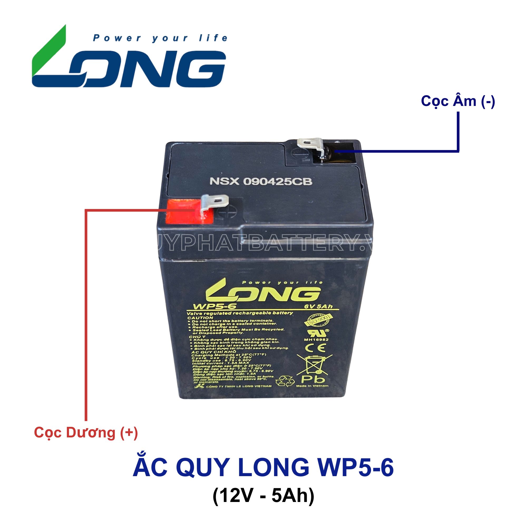 Bình ắc quy LONG WP5-6, F1 6V 5Ah là dòng ắc quy kín khí sử dụng công nghệ VRLA AGM, được sản xuất bởi Công ty TNHH Le Long Việt Nam. Sản phẩm thuộc phân khúc LONG WP, có xuất xứ Việt Nam, phù hợp cho nhiều thiết bị lưu điện và hệ thống điện dự phòng.
