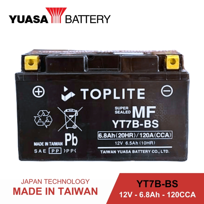 Bình ắc quy TOPLITE YT7B-BS (12V-6.8Ah) được sản xuất tại nhà máy YUASA Đài Loan - trực thuộc tập đoàn YUASA Nhật Bản nên tất cả bình ắc quy xe mô tô phân khối lớn TOPLITE đều có tiêu chuẩn kỹ thuật tương đương bình ắc quy YUASA trên toàn cầu - một công ty chuyên sản xuất và cung cấp các loại ắc quy cho xe máy, xe đạp điện và các thiết bị điện tử khác.