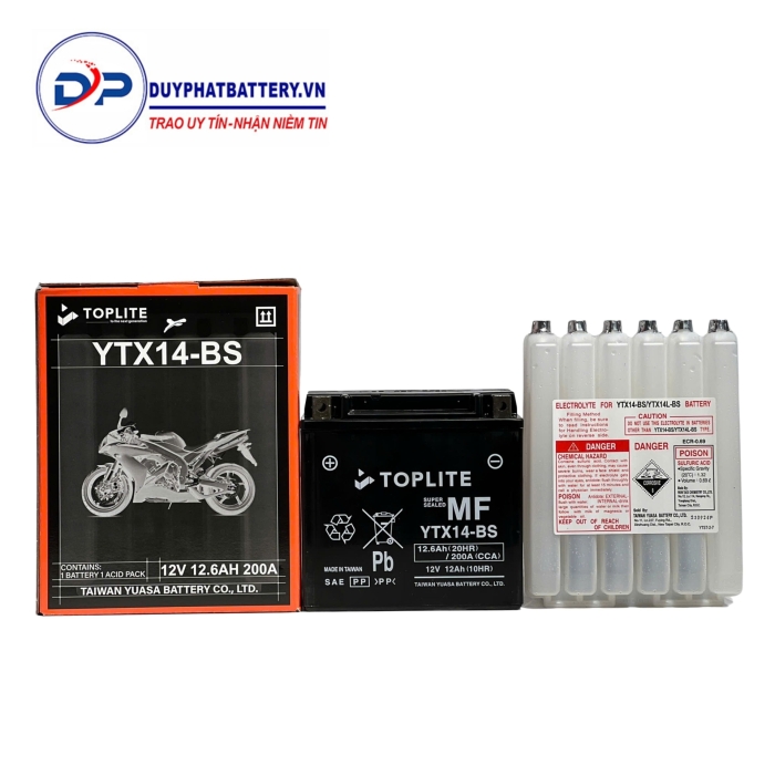 Bình ắc quy TOPLITE YTX14L-BS 12V 12AH CCA 200A Nhập khẩu YUASA Đài Loan, Chất lượng cao phù hợp các dòng xe mô tô phổ biến, Bảo hành chính hãng, Giao Hàng Tận nơi.