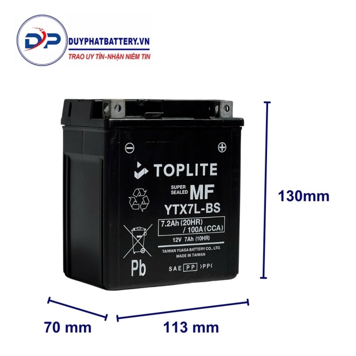 | Tên sản phẩm | Ắc quy khô Toplite YTX7L-BS (12V-7Ah) |