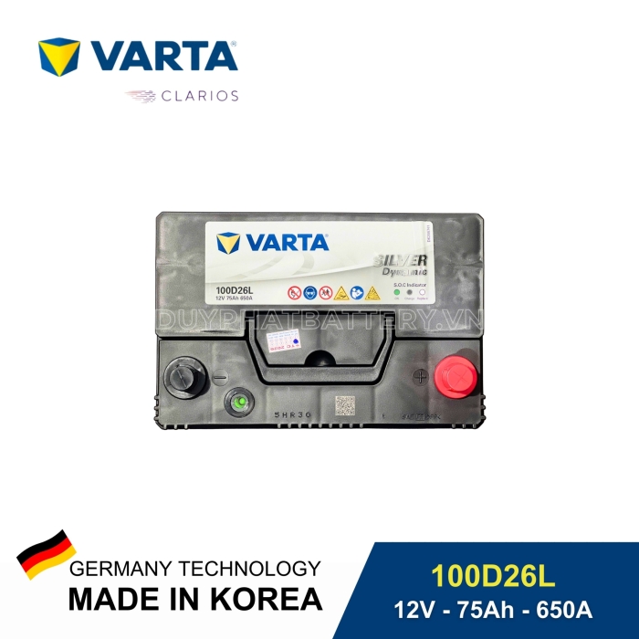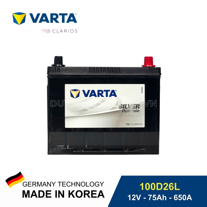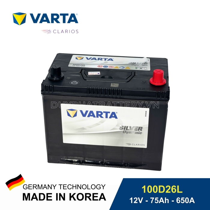 Bạn đang tìm một loại ắc quy bền bỉ, khởi động mạnh mẽ và phù hợp với điều kiện thời tiết, giao thông tại Việt Nam? Ắc quy Varta 100D26L 12V-75Ah CCA 650 là lựa chọn lý tưởng, được nhiều người tin dùng cho các dòng xe ô tô và xe tải. Đây là sản phẩm thuộc dòng Silver Dynamic cao cấp đến từ thương hiệu Varta – Đức, được nhập khẩu chính hãng từ Hàn Quốc.