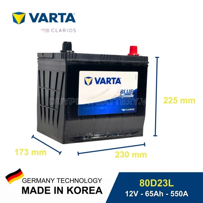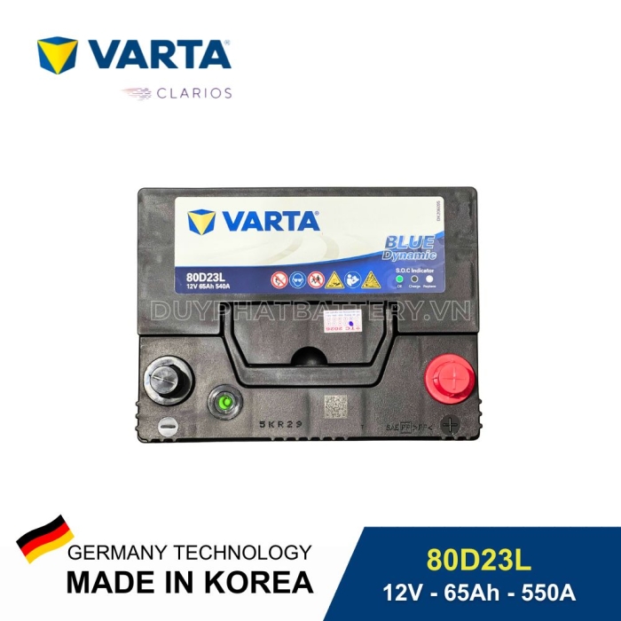 Ắc quy Varta 80D23L 12V-65Ah CCA 540 là một trong những dòng sản phẩm chất lượng cao được nhiều khách hàng tin dùng nhờ khả năng khởi động mạnh mẽ, công nghệ sản xuất tiên tiến đến từ châu Âu.