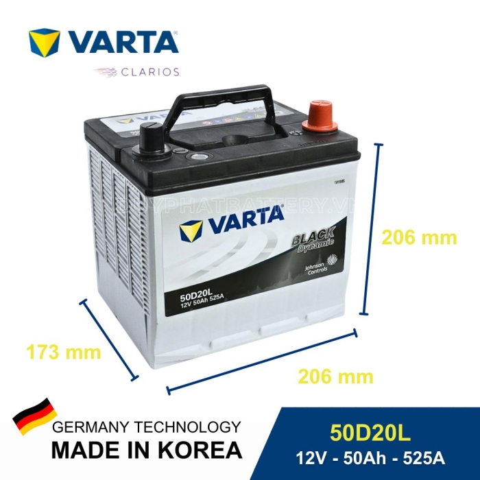 Ắc quy Varta 50D20L có kích thước quy chuẩn B24 (chiều rộng và chiều cao khổ B, chiều dài bình ắc quy tối đa 24cm), cọc nghịch, kiểu cọc tiêu chuẩn, thuộc phân khúc Varta Blue Dynamic là sự lựa chọn tối ưu dành cho các dòng xe hiện đại không có công nghệ dừng khởi động Start-Stop với năng lượng mạnh mẽ cùng hiệu suất cao hơn:
