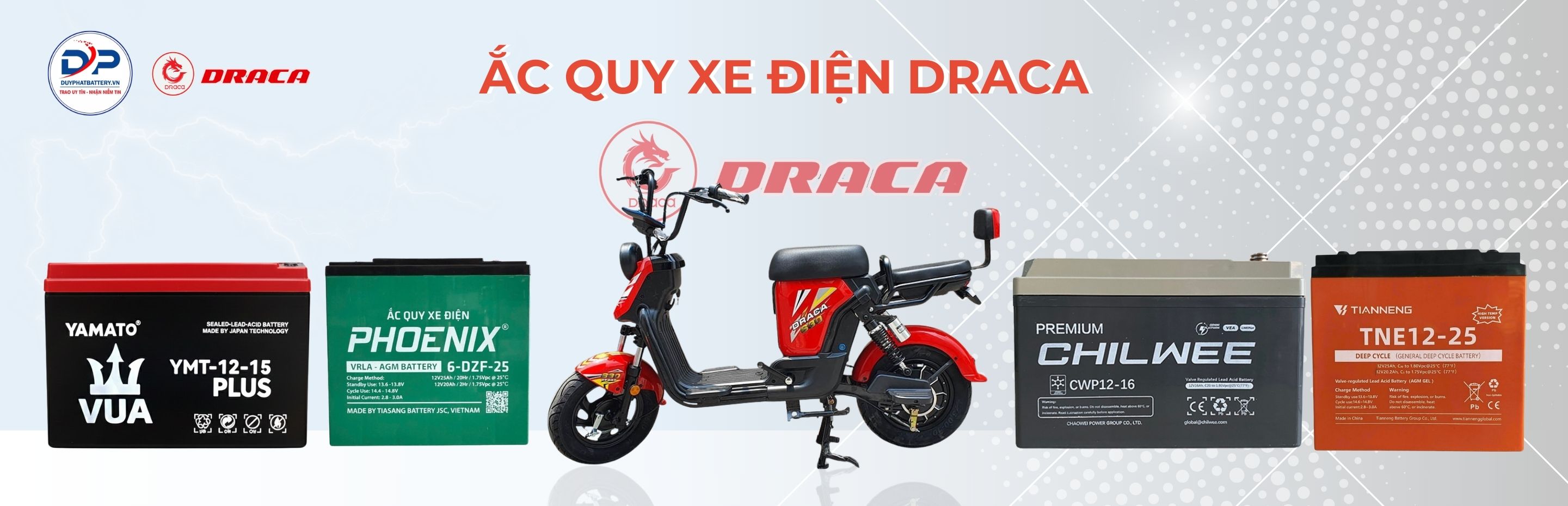 Các loại ắc quy xe điện Draca tại cửa hàng phù hợp với nhiều dòng xe phổ biến như: DRACA S30, Draca A8, Draca Classic, Draca A10, Draca A9, Draca Emy, Draca Joker, Draca SS22,... và nhiều dòng xe điện Draca khác.
