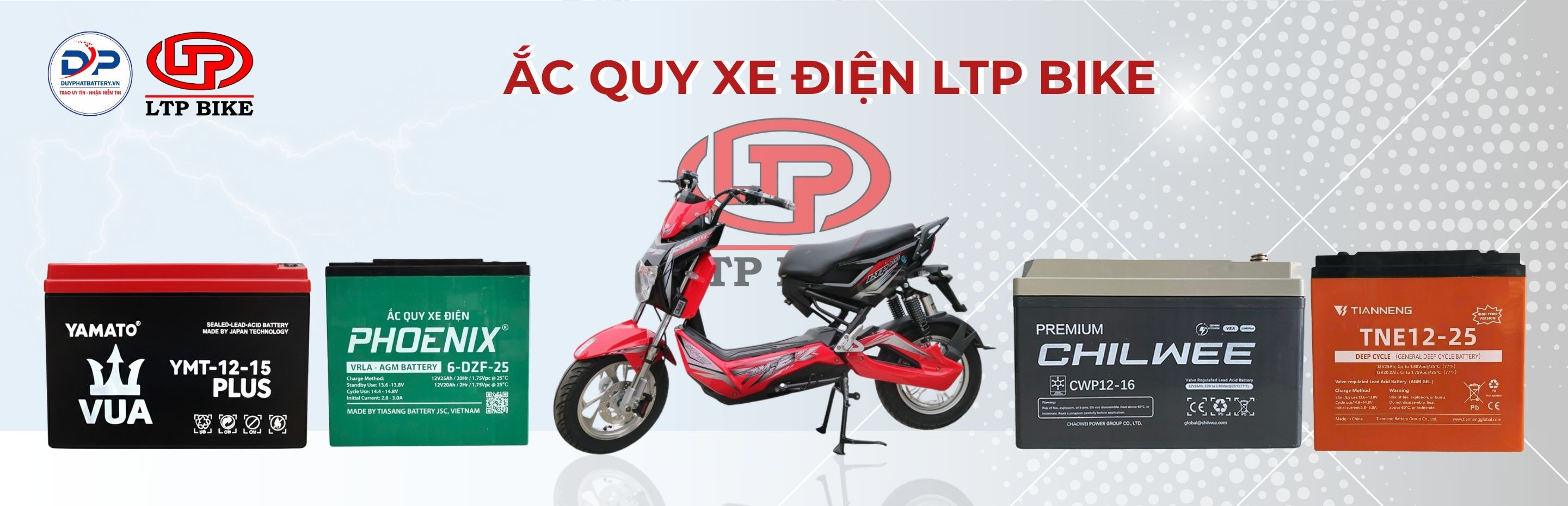 Các loại ắc quy xe điện LTP Bike tại cửa hàng phù hợp với nhiều dòng xe phổ biến như: LTP Okusan V8, LTP Bike Xmen 2 giảm sóc, LTP Bike đèn vuông,... và nhiều dòng xe điện LTP Bike khác.
