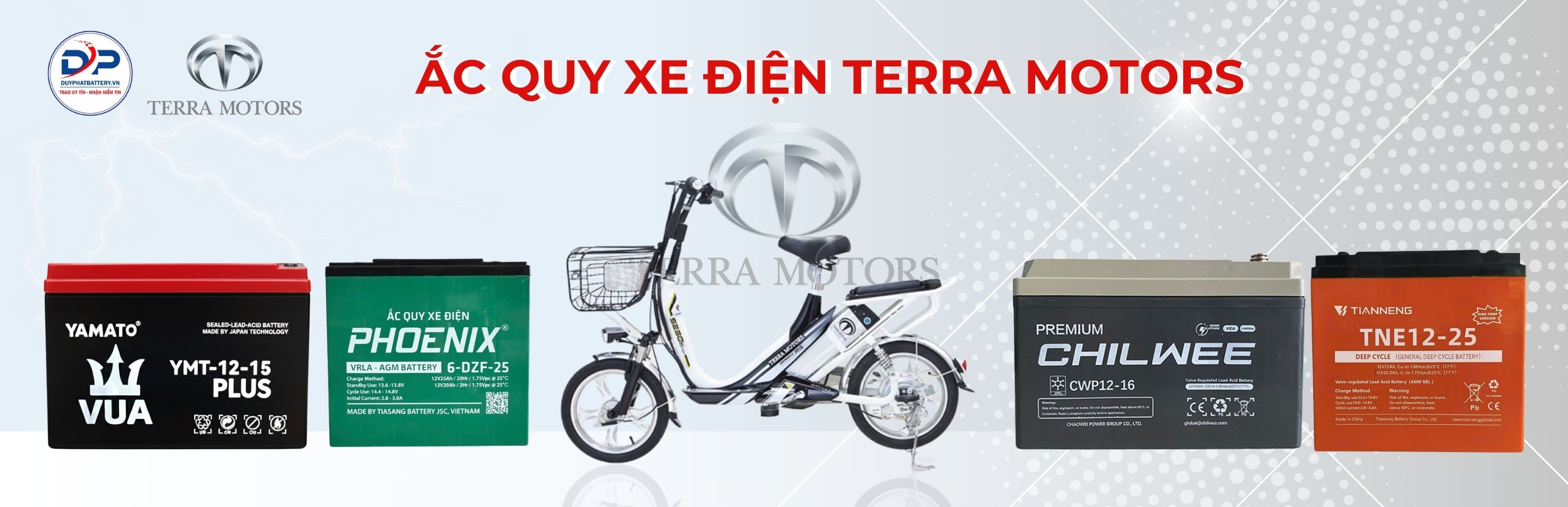 Bạn đang cần thay ắc quy xe đạp điện Terra Motors tại Tp. Hồ Chí Minh? Chúng tôi chuyên cung cấp bình ắc quy Terra Motors chính hãng, dung lượng chuẩn, giúp xe vận hành ổn định, tăng quãng đường di chuyển và kéo dài tuổi thọ sử dụng.