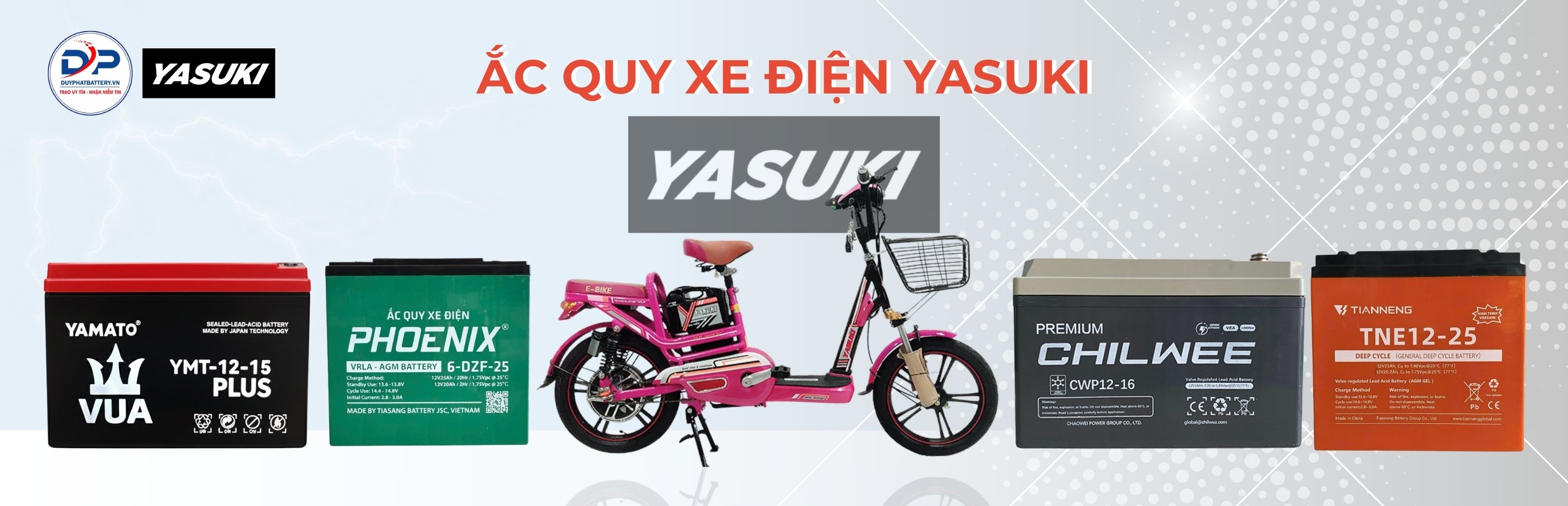 Các loại ắc quy xe điện Yasuki tại cửa hàng phù hợp với nhiều dòng xe phổ biến như: Yasuki S11, Yasuki S10 Plus, Yasuki S6, Yasuki S8, Yasuki Cap A, Yasuki Thiên Thần, Yasuki khung sơn 22inh nhún sau, Yasuki S10,... và nhiều dòng xe điện Yasuki khác.