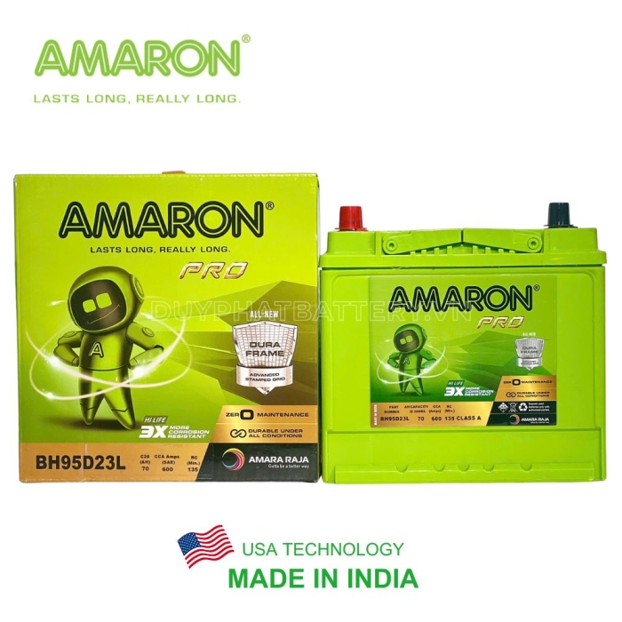 Ắc quy Amaron là ắc quy thương hiệu Mỹ, được sản xuất tại Ấn Độ bởi tập đoàn Amara Raja Batteries - Nhà máy sản xuất ắc quy hàng đầu tại Ấn Độ - Thương hiệu ắc quy dẫn đầu tại thị trường Châu Á.