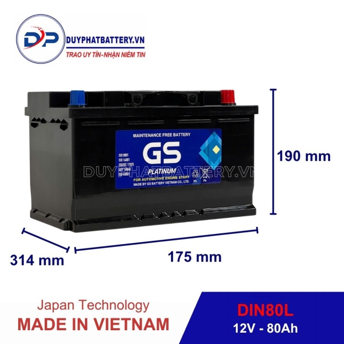 Ắc Quy Duy Phát tự hào là đại lý của GS tại Việt Nam phân phối Bình ắc quy GS LN4 DIN80L (12V-80AH)