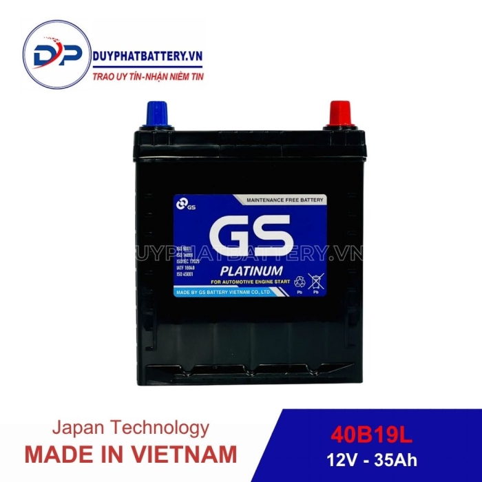 Ắc Quy Duy Phát là nhà phân phối độc quyền và lớn mạnh nhất khu vực Miền Nam của Ắc Quy GS đã có uy tín trên thị trường hơn 20 năm qua. Sản phẩm Bình ắc quy GS MF 40B19L (12V-35AH) do nhà phân phối Ắc Quy Duy Phát cung cấp có chủng loại đa dạng, mẫu mã đẹp, tiện lợi, chất lượng tốt, đáp ứng tiêu chuẩn Din 43539 & Jis D5320, thời gian bảo hành dài, áp dụng chính sách bảo hành toàn quốc.