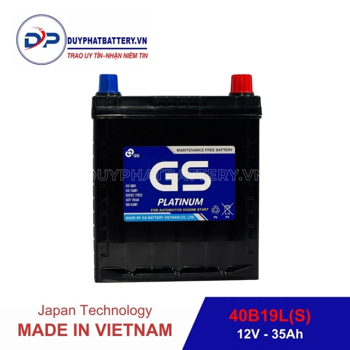 Bình ắc quy GS MF 40B19L(S) (12V-35AH) do Công Ty TNHH Ắc Quy GS Việt Nam Sản Xuất, là một công ty 100% vốn nước ngoài, liên doanh giữa Tập Đoàn GS - YUASA - Nhà sản xuất Ắc Quy axit chì hàng đầu Châu Á, chuyên sản xuất các loại Bình Ắc Quy Ô Tô - Xe Máy và Tập Đoàn MITSUBISHI - Tập Đoàn thương mại lớn nhất Nhật Bản.