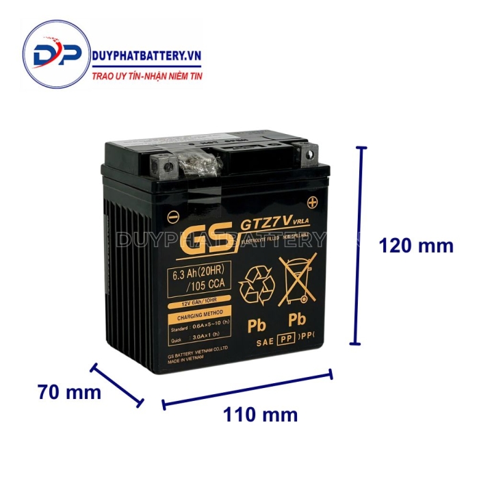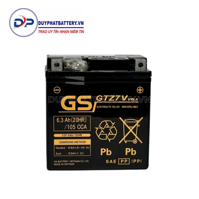 | Tên sản phẩm | Bình ắc quy khô GS GTZ7V (12V-6.3Ah) |
