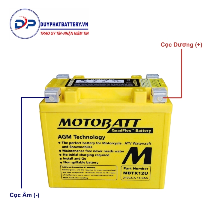 >>>> Xem thêm : Bình ắc quy MOTOBATT MBTX9U (12V-10.5Ah) giá rẻ phù hợp với nhiều dòng xe khác nhau tại Duy Phát