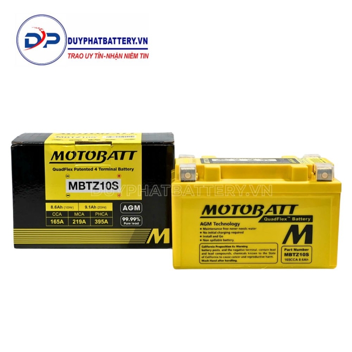 Với giá cả phù hợp và chất lượng tốt, Bình ắc quy MOTOBATT MBTZ10S tại Duy Phát là sự lựa chọn thông minh cho những ai đang có nhu cầu mua bình ắc quy để thay thế cho xe của mình.