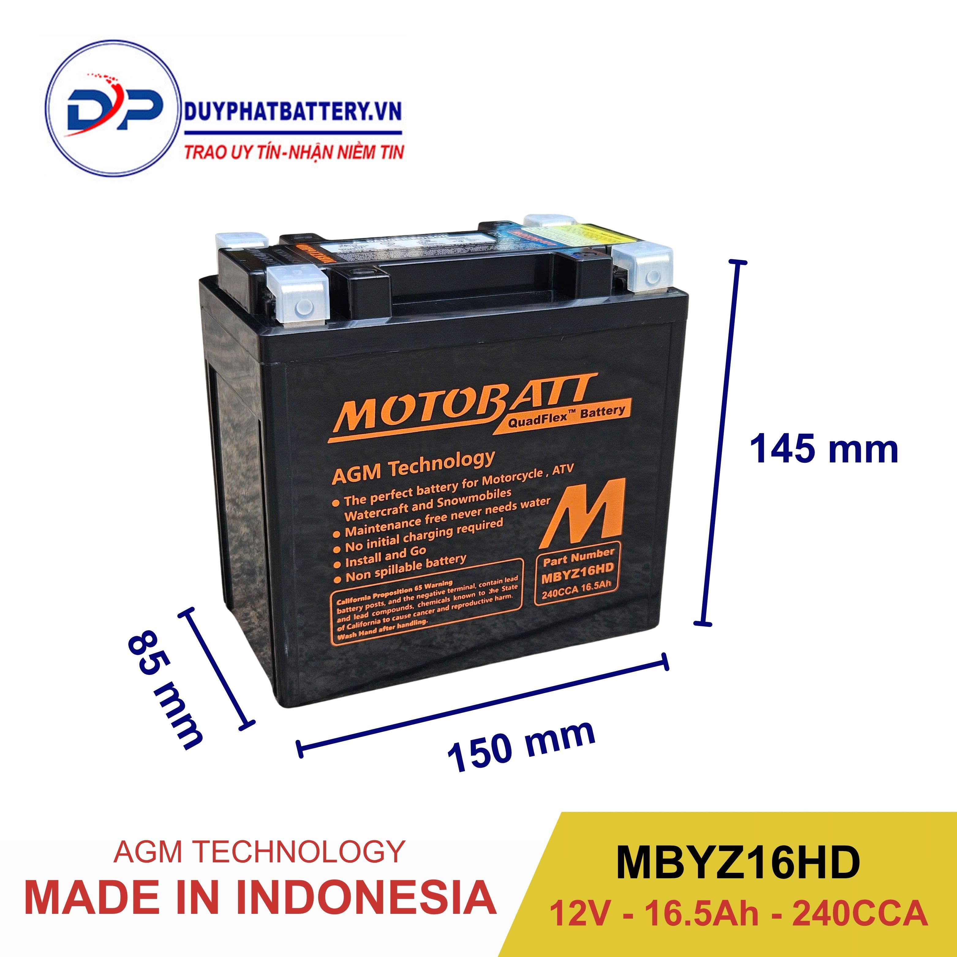 Bình ắc quy Motobatt dùng cho xe Harley Davidson Pan America 1250: MOTOBATT MBYZ16HD (12V-16.5Ah)