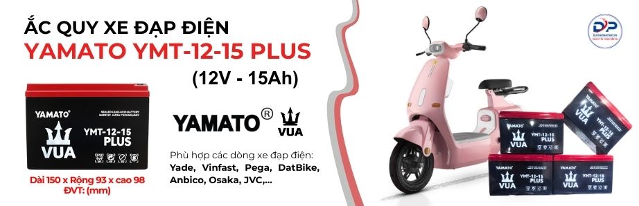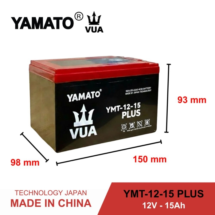 Bình ắc quy Yamato Vua YMT-12-15 Plus (12V-15Ah) - Ắc quy xe đạp điện