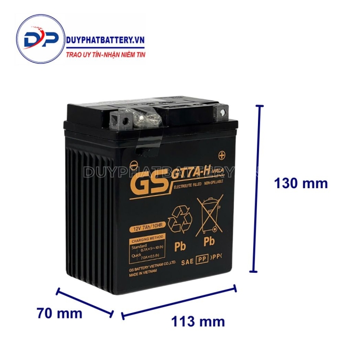 | Tên sản phẩm | Bình ắc quy khô GS GT7A-H (12V-7Ah) |