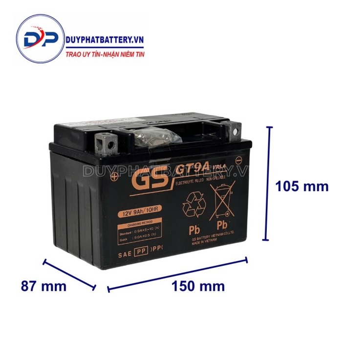 | Tên sản phẩm | Bình ắc quy khô GS GT9A (12V-9Ah) |
