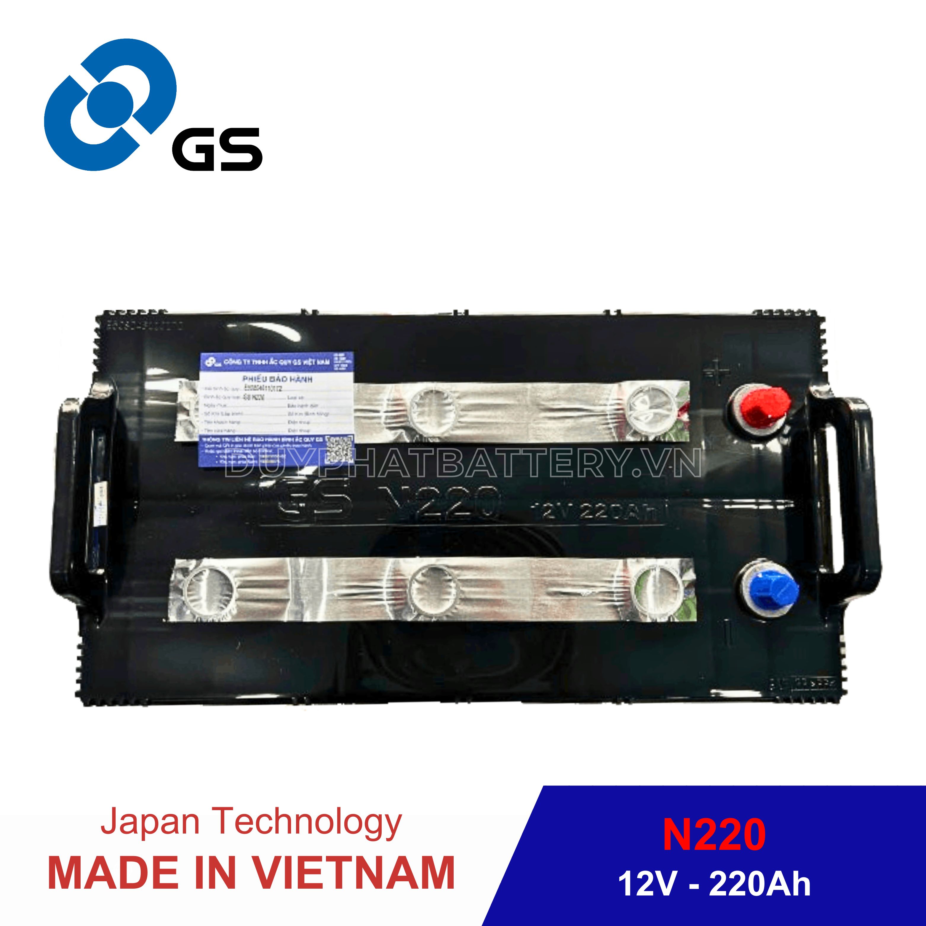 Ắc Quy Duy Phát tự hào là đại lý của GS tại Việt Nam phân phối bình GS nước N220 (12V-220AH)