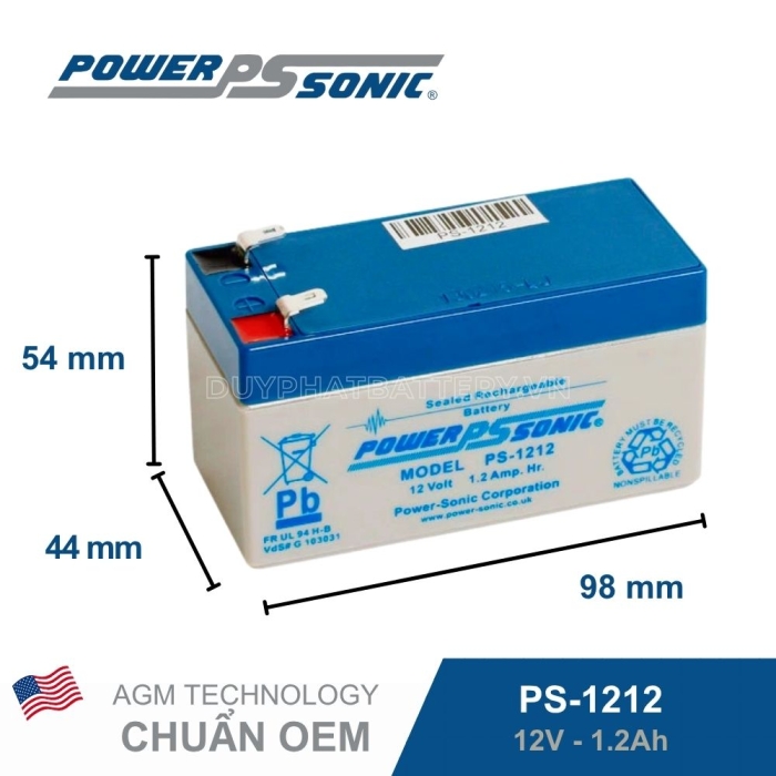 Pin Power-Sonic PS1212 (12V 1.2Ah) sử dụng công nghệ AGM và tái kết hợp khí, mang lại: